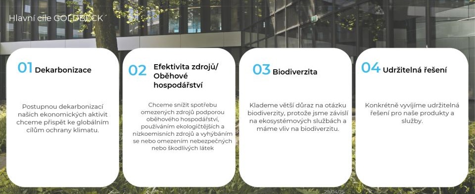 zajištění kvality prostředí, ve kterém pracujeme, a minimalizace našeho ekologického otisku. I